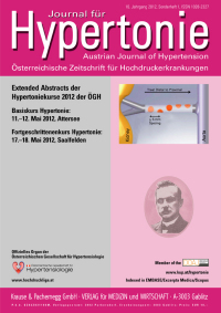 Extended Abstracts der Hypertoniekurse 2012 der ÖGH Basiskurs Hypertonie: 11.-12. Mai 2012, Attersee Fortgeschrittenenkurs Hypertonie: 17.-18. Mai 2012, Saalfelden | |